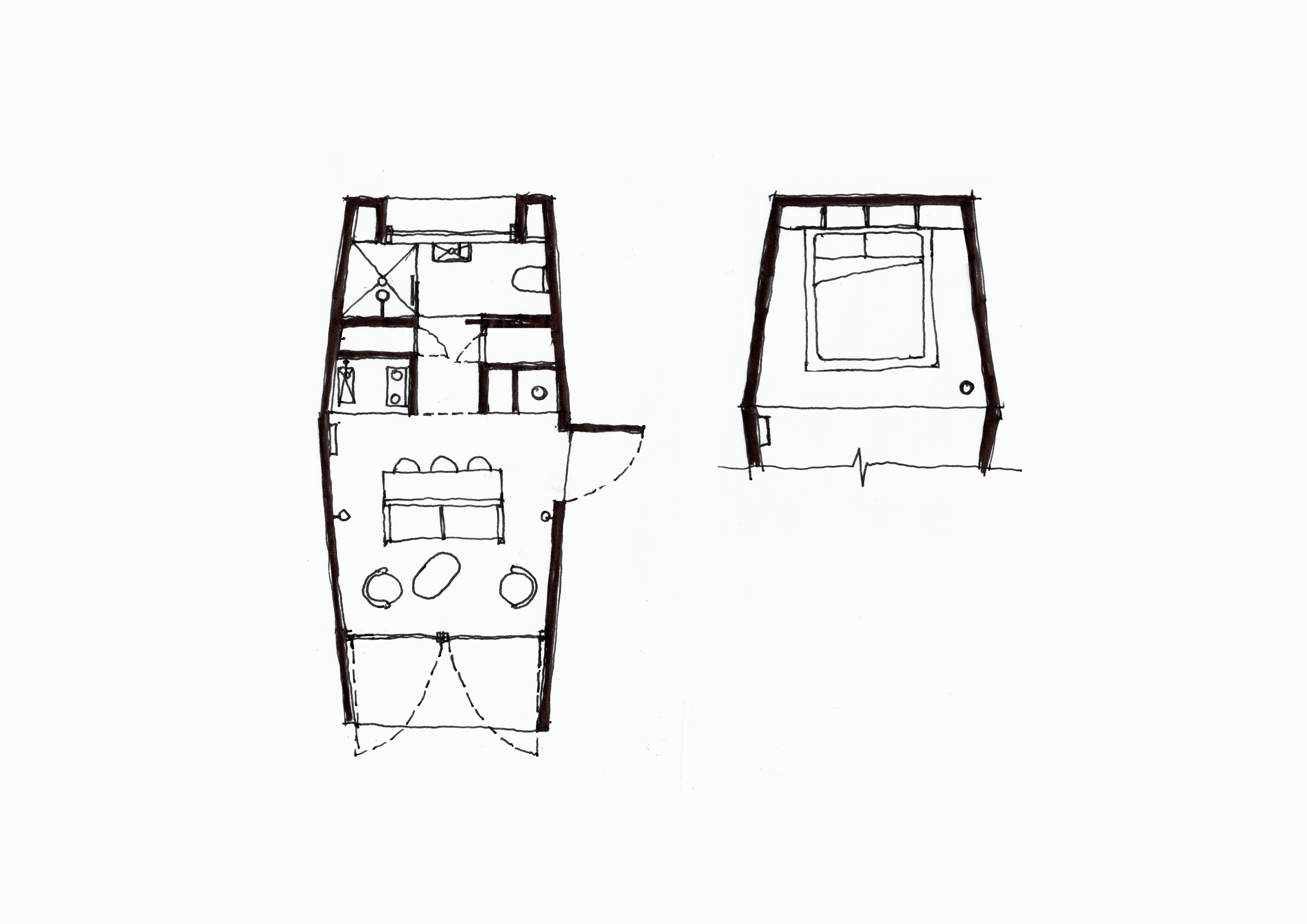 Inspired by renovating and dwelling in a Norwegian lake side cabin for two weeks in the summer of 2018, this design concept looks to optimise space by placing sleeping facilities on a mezzanine floor above the utility spaces. Transportable and relocatable, steel pole legs offer minimal impact on the forest floor and elevate the building above the moisture of the ground. The building shape is driven from the autonomous technology that is integrated throughout the cabin. Rain water is collected off roof and stored in a potable water tank under the floor, which also houses grey and black water tanks. Solar panels charge batteries that store energy for consumption as required. A small skylight enables the occupants to see the stars and aids in stack effect natural ventilation.